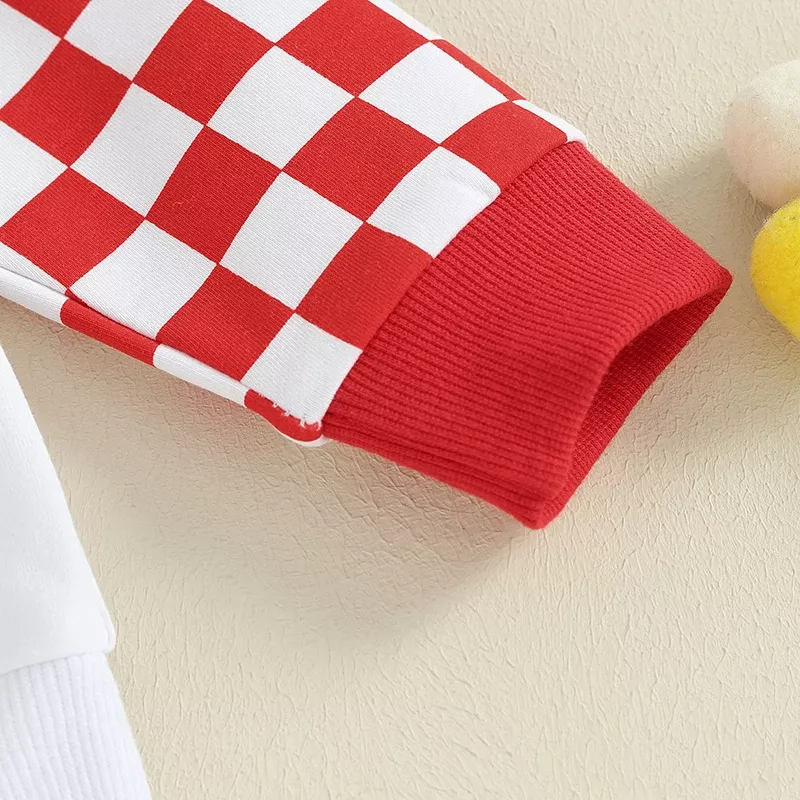 The unique blend of traditional and contemporary designs makes this outfit stand out. The heart and checkerboard pattern adds a playful touch, while the quality fabric ensures durability and comfort. It’s an outfit that speaks volumes of love, making it an ideal choice for your toddler’s special moments.