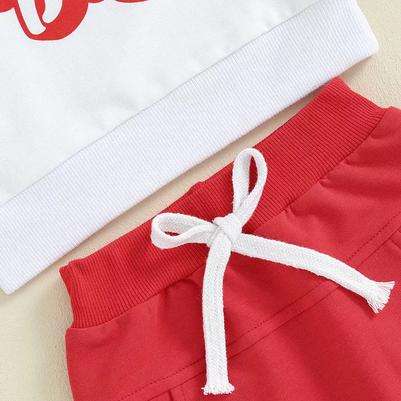 This outfit isn’t just another addition to your toddler’s wardrobe—it’s a statement of love and joy. Perfect for Valentine’s Day celebrations, family gatherings, or just a cute everyday look, its special design combines tradition with a modern twist. The playful patterns are sure to capture hearts, while the soft fabric ensures your little one stays comfortable through all their adventures.